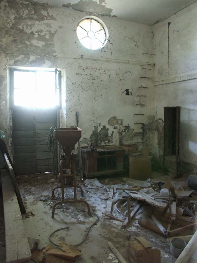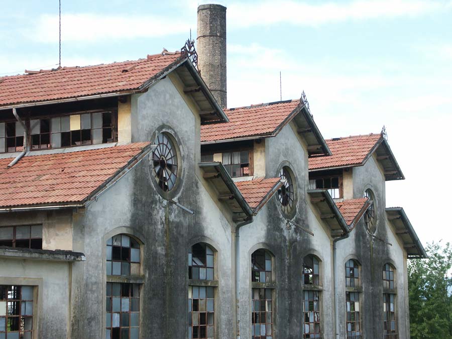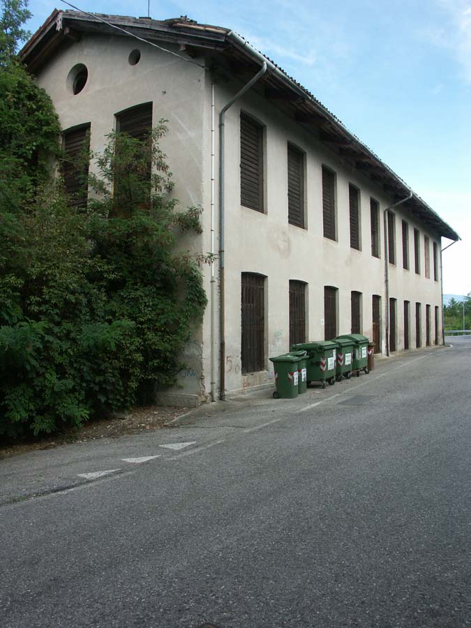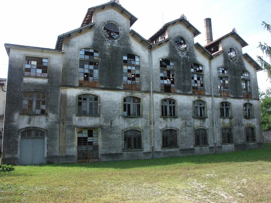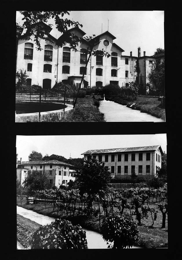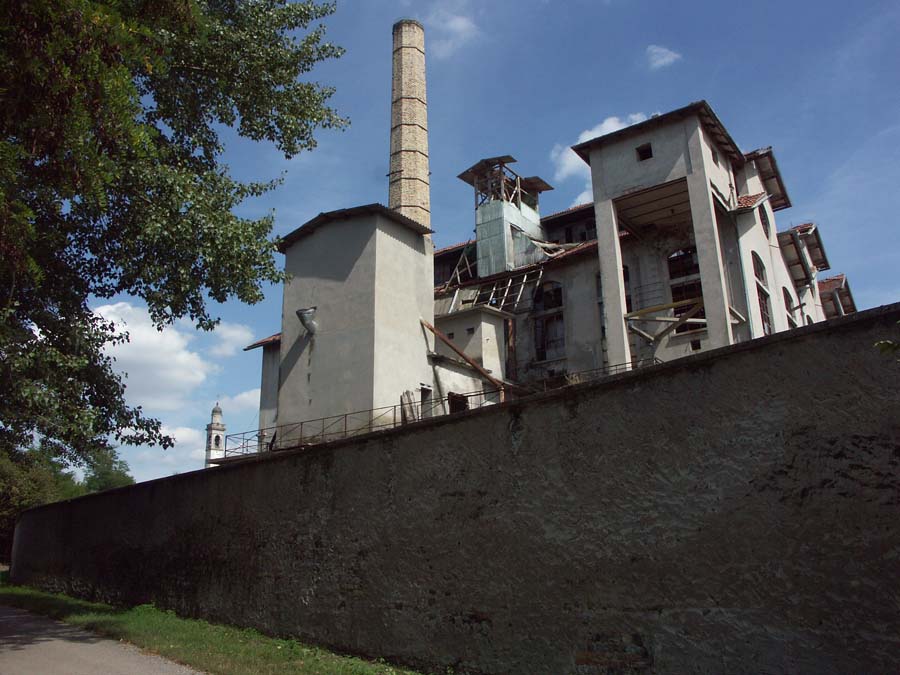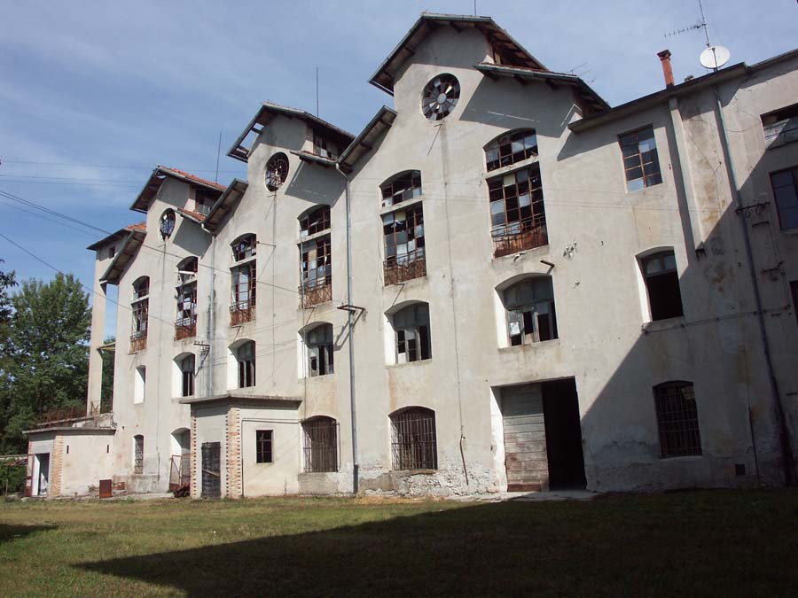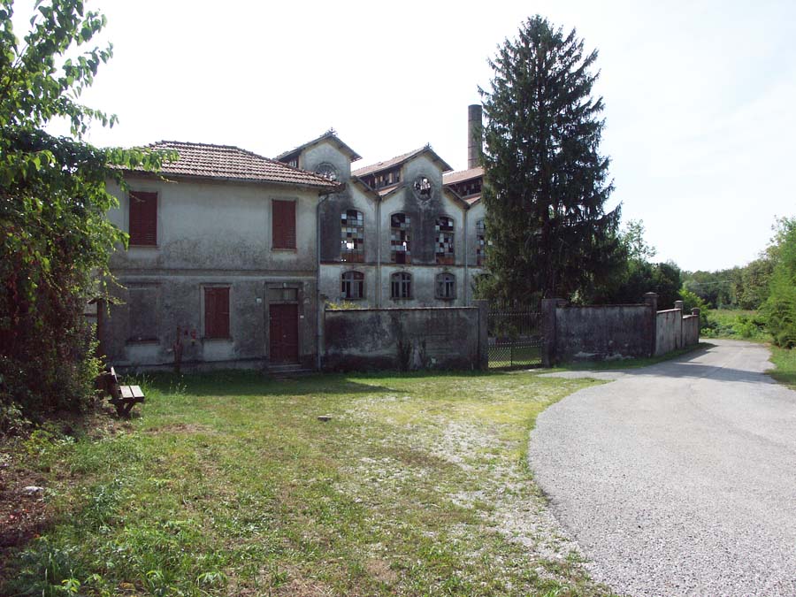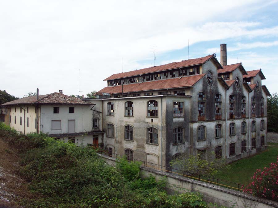 Il complesso, sulla sponda sinistra del Tagliamento, è costituito da un corpo principale tripartito e da uno a copertura piana posto in chiusura ad Est, cui è addossato il grande fabbricato, disposto su 3 p. più il seminterrato parziale comprendente il vano scale d’accesso alla filanda, destinato a residenza del direttore e del proprietario, e dove venivano anche ospitate le operaie provenienti da fuori. Ad Ovest la ciminiera. Isolati, a Sud-Est, la bozzoliera, a Sud-Ovest un deposito in parte a giorno, a Nord-Est la casa del custode. L’edificio principale, a pianta rettangolare, è disposto su 3 p.; ha strutture verticali in c. a., ferro e muratura in laterizio e ciottoli intonacata; strutture orizzontali in laterizio e travi di ferro; è coperto da un triplice tetto a salienti, a tegole piane, ciascuno percorso lateralmente da vetrate continue. L’imponente facciata, a Nord, è chiusa da un oculo a coronamento, mentre aperture a sesto ribassato percorrono i prospetti.