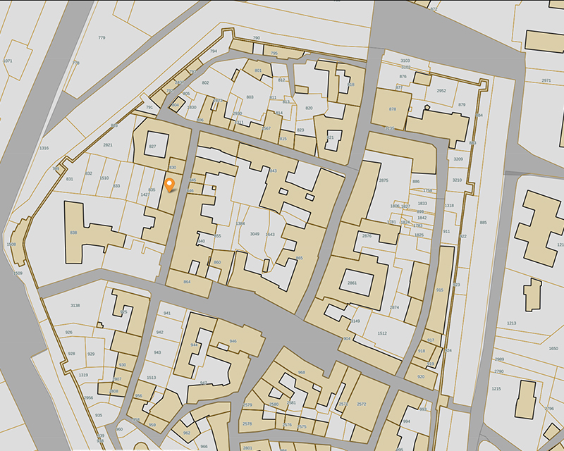 Di probabile origine duecentesca (come la maggior parte degli edifici all’interno della cittadella fortificata e come testimoniato dalla traccia di precedente foro a sesto ribassato in facciata), l’immobile denominato “Scuderie Pozzo” deve la sua configurazione attuale (sebbene ricostruita) alle modifiche avvenute nel corso dei secoli XVII e XIX, epoca in cui l’edificio - in origine a due piani – venne fortemente rimaneggiato in seguito ad un incendio e probabilmente innalzato di un piano. Intorno al 1870, inoltre, i Pozzo proprietari dell’immobile e dell’omonimo palazzo si trasferirono, lasciando le strutture in stato di abbandono e vendendole a lotti. In uno schema del rilievo di danno allegato alla scheda cartacea e redatto dall’architetto Carlo Santamaria nell’agosto del 1979, si deduce che i danneggiamenti subiti dall’edificio fossero ingenti: il fabbricato risultava crollato per l’intero secondo piano e buona parte del primo, mentre restavano in opera lo stipite destro del portale architravato, la muratura alla sua destra e solo parte del portale con arco a tutto sesto. Dallo schema, inoltre, si deduce anche che la seconda finestra a destra del portale sia il risultato della modifica di un precedente foro porta, come testimonia la “lacuna” delle strutture lapidee superstiti lasciate a vista e sulle quali si innestano gli alzati ricostruiti.