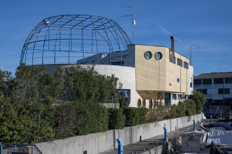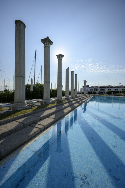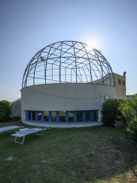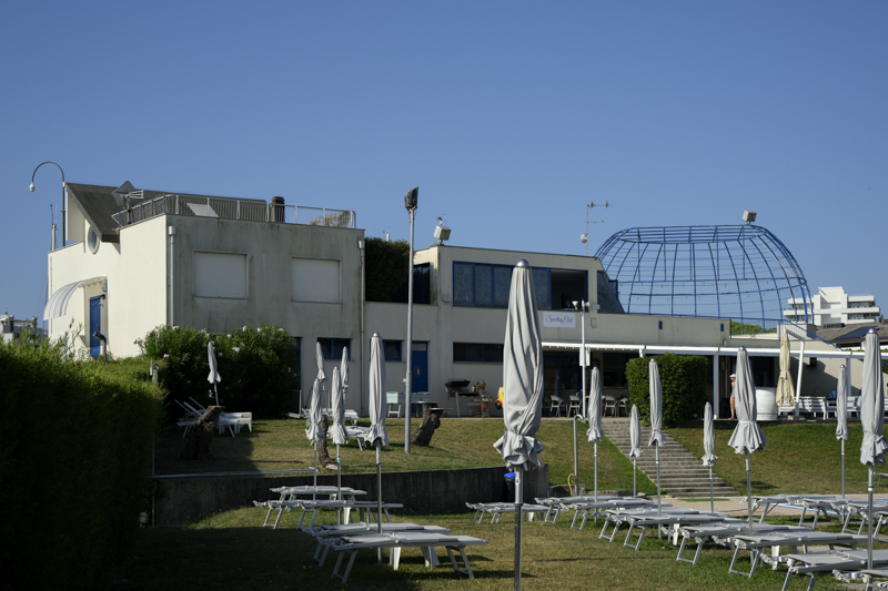 L'edificio fa parte di quel complesso architettonico che è il Centro Turistico di Lignano, considerato una delle più raffinate esperienze di architettura dell'inganno, dove tutto è volutamente simulato (come le colonne rifatte in cemento bianco in bella copia a imitazione di quelle della vicina Aquileia) e ricco di allusioni simboliche. Fin dagli anni '50 lo Studio Nizzoli ha portato avanti il discorso su forma e colore considerandole come parti integranti dell'architettura (si pensi alla cupola "virtuale" del ristorante in rete metallica). Anche qui, come per tutto il complesso turistico, è insolito l'uso originario dei materiali e del colore: l'elemento unificante dell'intervento era il legno scuro con il quale era stato rivestito l'intero l'edificio; i telai dei serramenti erano di colore verde chiaro come anche alcune pareti esterne. Oggi, purtroppo, questa differenza materica e cromatica è venuta a perdersi, probabilmente in seguito ad una manutenzione delle facciate, che risultano essere, allo stato attuale, intonacate con i colori neutri del rosa pallido; su esse insistono le aperture, mantenute nella loro forma originaria, il cui telaio ora risulta essere di colore blu. Questa soluzione "moderna" ha in qualche modo appiattito l'impatto visivo ed architettonico dell'intero complesso lasciandolo privo della valenza simbolica e allusiva tipica del modus operandi dello studio Nizzoli di quegli anni.