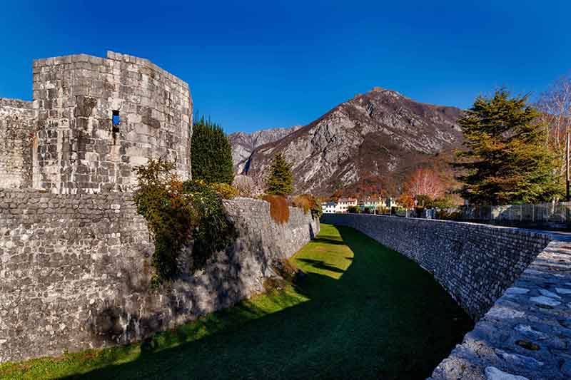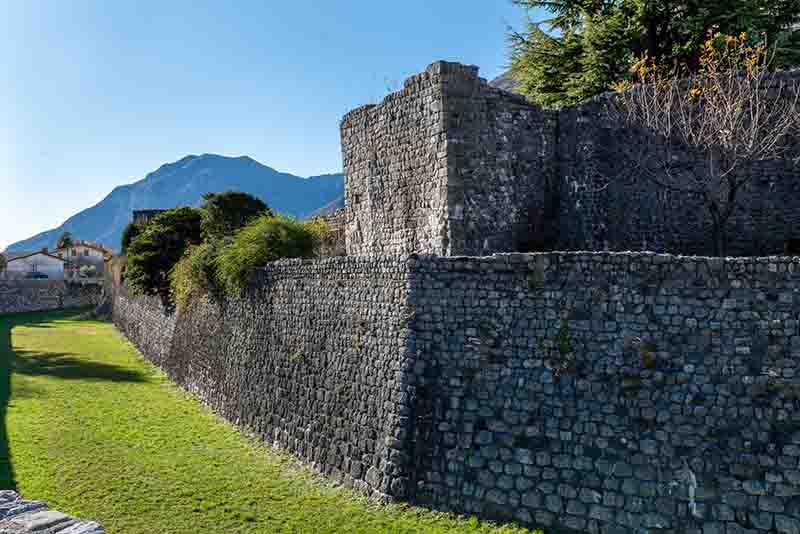 Ulteriori interventi di restauro interessarono il circuito difensivo nel corso del Seicento: ripristino delle mura, realizzazione di alcune feritoie e costruzione di tre ponti in muratura in sostituzione degli esistenti ponti levatoi presso le tre porte cittadine. Una targa datata 1646, collocata a Est della Porta di Sopra e perduta con i sismi del secolo scorso, riportava l’incisione “CONTRA TURCHAS”, testimoniando che tali lavori fossero stati effettuati in previsione di un assedio turco.