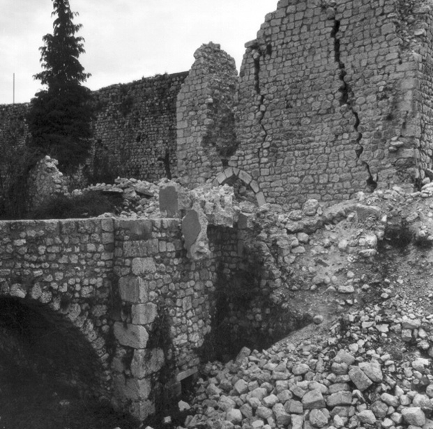 In seguito agli eventi sismici di maggio e settembre 1976, diverse porzioni del circuito difensivo crollarono o subirono ingenti danni: dal 1977 al 1979 l’allora Soprintendenza intervenne restaurando porta e torre di San Genesio. Risalgono, invece, agli anni ricompresi tra il 1982 e il 1986 gli interventi di restauro sulle restanti parti del circuito difensivo (sulla chiave di volta interna della Porta di Sotto è incisa la data “1986”). A partire dal 1990, infine, per opera della Comunità Montana del Gemonese, vennero restaurati i muri di sostegno del fossato.