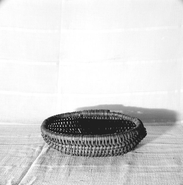Cestino di forma ovale allungata: e formato da sottili nastri di legno di castagno intrecciati.