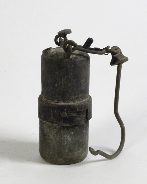 Contenitore cilindrico costituito da due parti comunicanti: un serbatoio per l'acqua (parte superiore) e un contenitore per il carburo di calcio in polvere (parte inferiore). In questo caso le due parti sono fermate da una chiusura a baionetta. Mediante un apposito rubinetto è possibile regolare l'ingresso dell'acqua nel contenitore sottostante. Appena il carburo entra in contatto con l'acqua avviene una reazione chimica con produzione di acetilene (gas infiammabile), che fuoriesce da un beccuccio situato nella parte superiore.