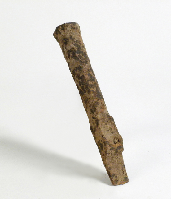 Attrezzo in ferro di forma allungata; presenta sezione poligonale in testa e sezione quadrata nella parte centrale. Qui, in corrispondenza di uno spigolo, è parzialmente visibile un piccolo foro passante atto all'inserimento di un sottile anello, ora coperto di ruggine. In corrispondenza della punta a scalpello lo spessore dell'oggetto si riduce a spigolo.