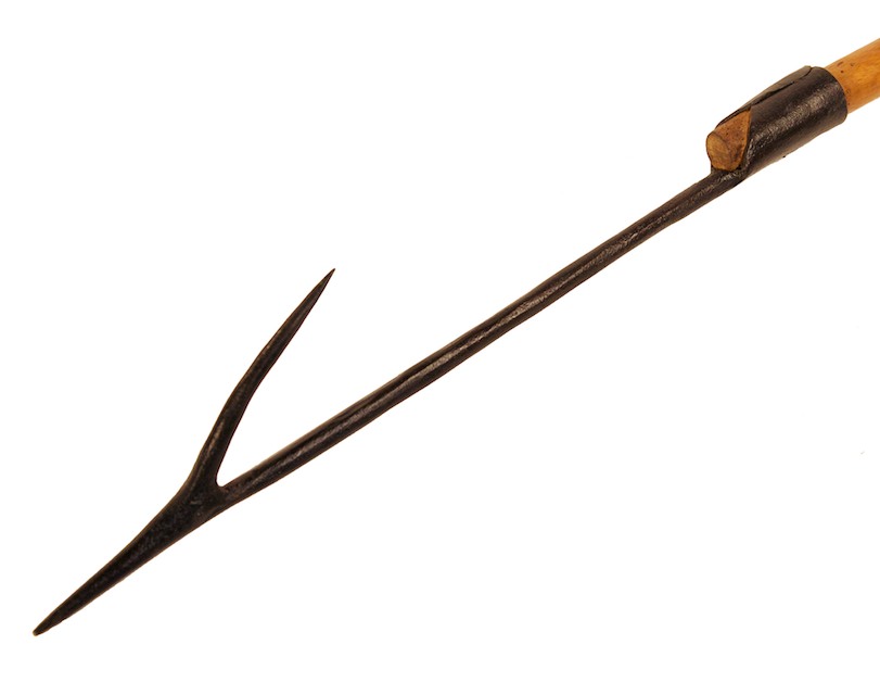 strumento con manico inserito in un occhiolo realizzato alla base dell'asta terminante con una punta che si prolunga piegandosi in un uncino