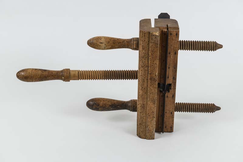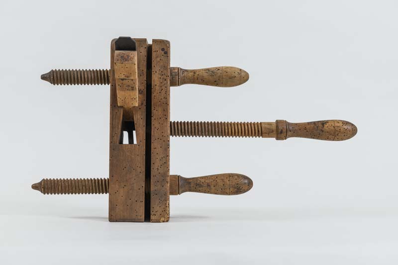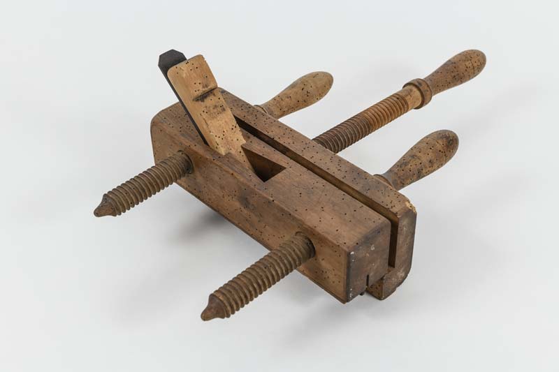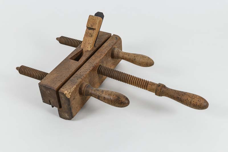 L'attrezzo è costituito dalla pialla e da una guida laterale in legno con alta ma breve staffa unita al ceppo tramite due grandi viti con impugnature tornite. Dalla suola della pialla sporge la lamina-guida metallica longitudinale al ceppo, con un taglio centrale obliquo per permettere la fuoriuscita della lama del coltello. Una terza vite è infilata nel fianco esterno della guida di legno. Ferro e cuneo ligneo di bloccaggio sono alloggiati in posizione obliqua nella buca del ceppo.
