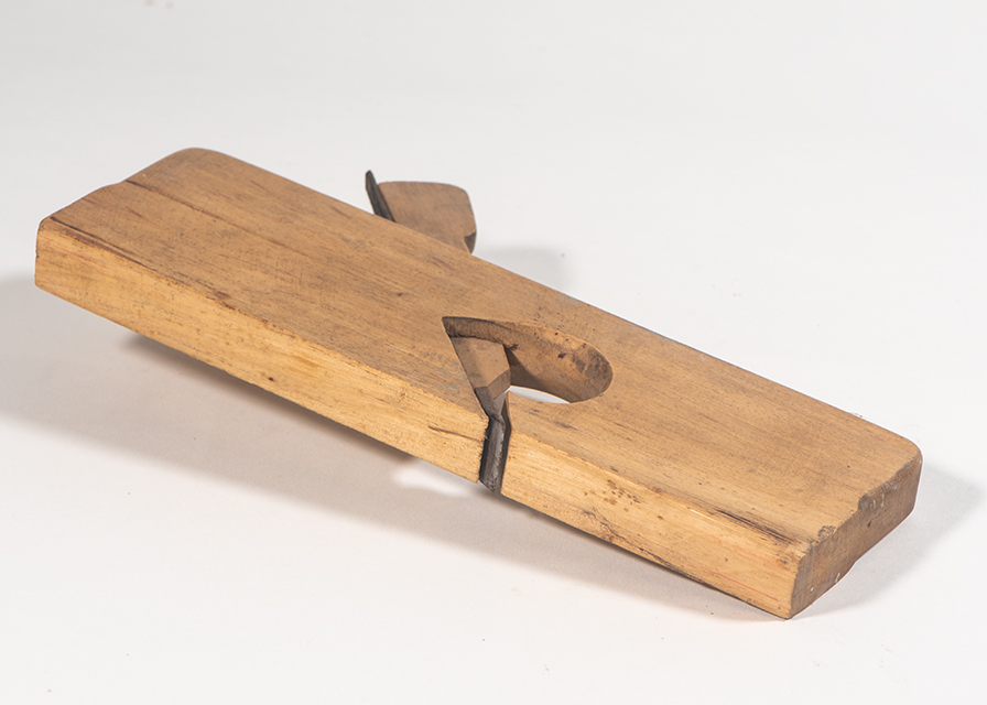 Questa pialla, detta sponderuola o #pialla da sponda# ha un corpo (ceppo) formato da un sottile parallelepipedo di legno chiaro, con angoli arrotondati nella parte superiore. Ci sono residui di vernice. Il corpo presenta un foro trasversale per l'alloggiamento della lama e del cuneo. Il foro laterale, ottenuto con la sgorbia, è a forma di P e trapassa il corpo: da qui fuoriescono i trucioli. Questo tipo di pialla non prevede un manico. La lama, prima sottile, si allarga nella parte tagliente per diventare anche più larga del ceppo.