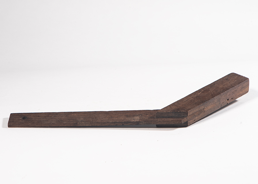 La squadra è costituita da due regoli in legno uniti insieme ad incastro: il regolo minore, chiamato zoccolo o suola, è più alto e spesso rispetto all'altrro, più lungo, sottile e piatto. Il regolo maggiore presenta un foro circolare nell'estremità libera che permette di appendere lo strumento. I due elementi sono fissi e creano un angolo di 135°.