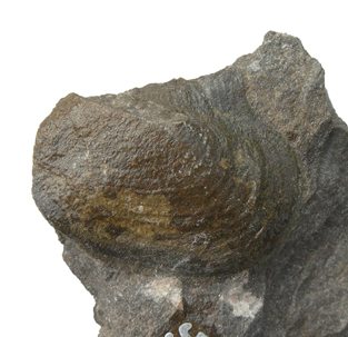 Modello di valva sinistra conservata su di un frammento roccioso. E' stata ricoperta con uno smalto.