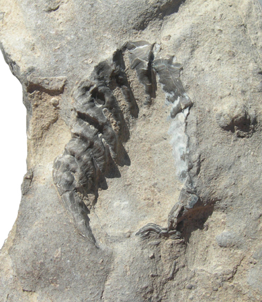 Valva in vista interna conservata su di un frammento roccioso.
