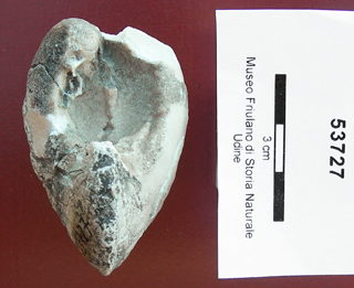 Modello interno di bivalve. L'umbone della valva sinistra è danneggiato.