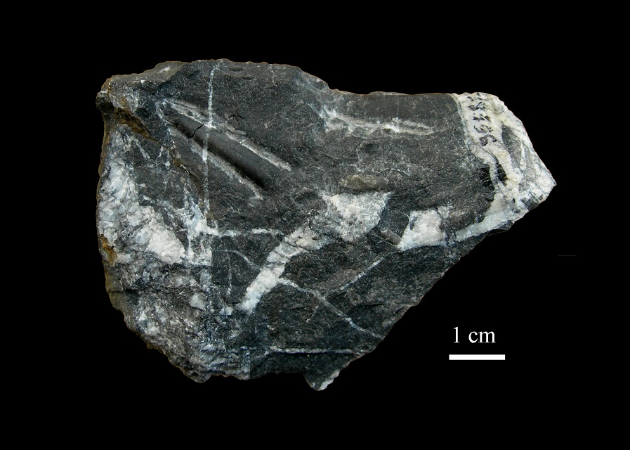 Conchiglia parziale in un frammento di calcare nero.