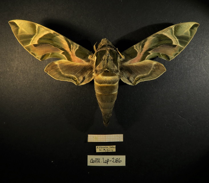Distribuzione: D. nerii si trova in vaste aree dell'Africa e dell'Asia. È una specie migratoria e, nei periodi estivi si può trovare in tutta Europa fino nell'area meridionale della penisola scandinava. In Italia, esiste sia come specie migrante nei mesi più caldi, sia come specie stanziale nel Sud d’Italia dove le crisalidi possono sopravvivere all’inverno. Con il riscaldamento globale e gli inverni più miti questa specie risulta spesso stanziale anche al nord. Biologia: nell'Europa meridionale, si osservano soltanto due generazioni l'anno, tra maggio e luglio, e tra agosto e settembre, in altre zone dove è stabilmente residente, può essere presente con circa 5 generazioni. Gli adulti si nutrono di nettare di una grande varietà di fiori svolgendo il compito di insetti pronubi. Essi hanno una preferenza per le specie profumate come petunia, gelsomino e caprifoglio. Gli adulti di D. nerii sono particolarmente attivi nel crepuscolo, e si librano sopra i fiori dopo il tramonto, la lunga spiritromba permette alla falena di nutrirsi restando sospesa in volo senza appoggiarsi sulla corolla del fiore. Durante il giorno riposano aggrappati a una foglia oppure sulle rocce. Le larve vengono considerate polifaghe in quanto sono state segnalate su molteplici piante di diverse famiglie, ma le piante nutrici principali sono alcune appartenenti alle Apocynaceae, ed in particolare il Nerium oleander, ma si può trovare anche su Vinca, Acokanthera, Carissa, Rauwolfia, Adenium multiflorum.