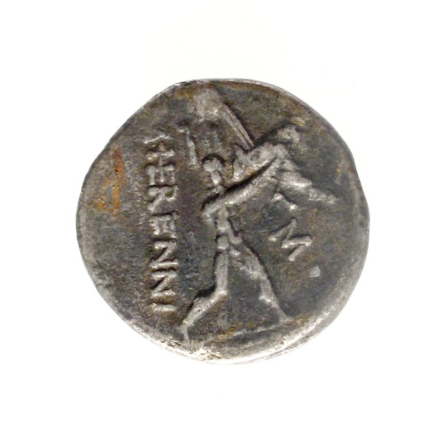 Uno dei fratelli Catanei che trasporta il padre sulle spalle; nel campo a d.: marca di controllo alfabetica M seguita da un punto Nel campo a s.: M. HERENNI (HE in nesso)
