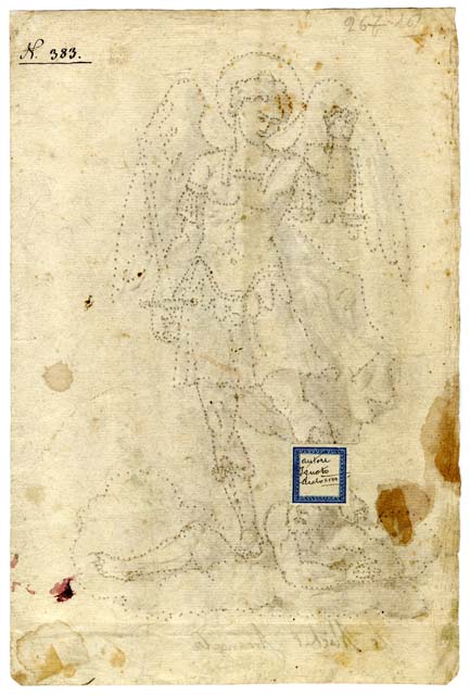 Il foglio raffigura San Michele Arcangelo, secondo un'iconografia tradizionale: in piedi, calpesta Lucifero e regge bilancia e spada.