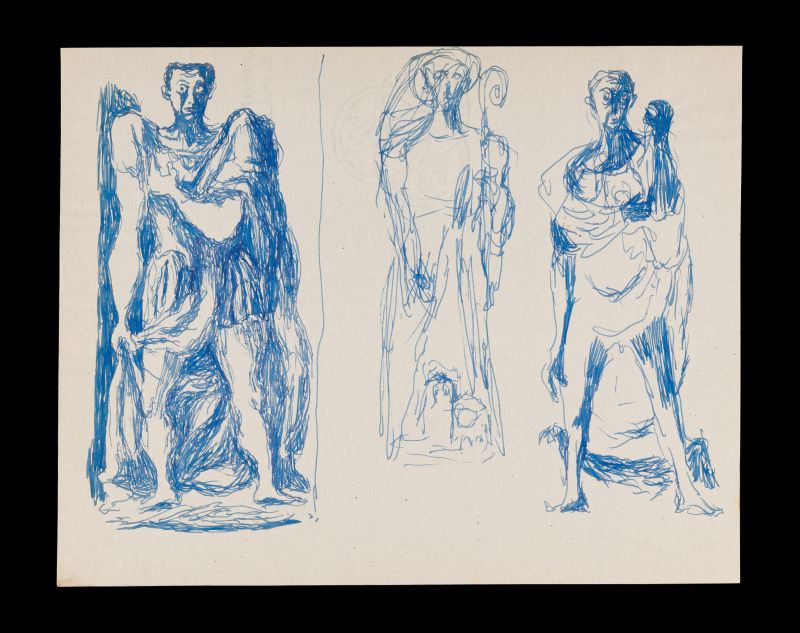 Il disegno potrebbe essere uno studio di figura legato all'opera a olio "San Giusto", del 1946, come i fogli con i numeri d'inventario precedenti al presente. Si rimanda alle schede D_11927 e D_11928 per gli approfondimenti su questo soggetto e i confronti.