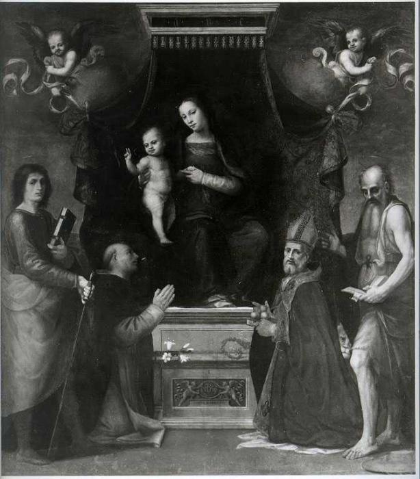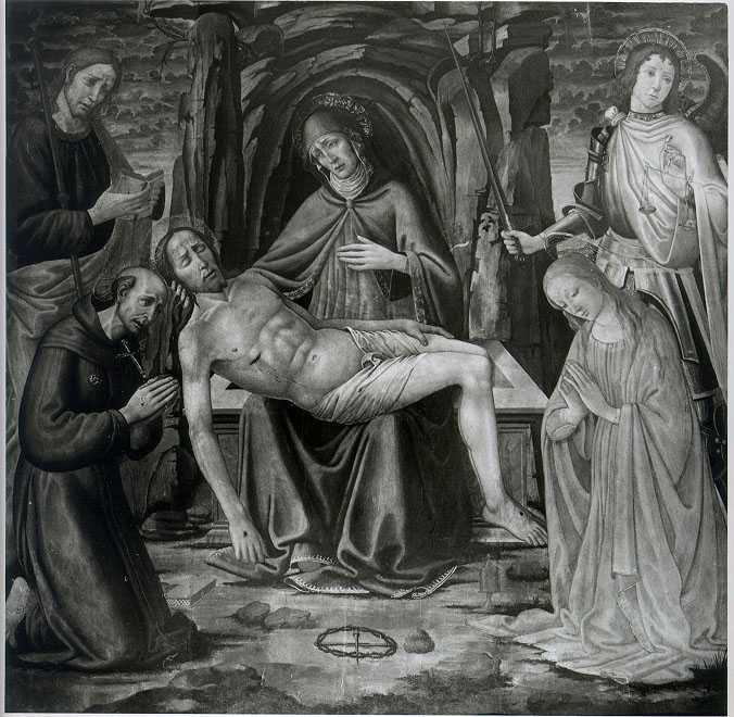 Jacopo di Arcangelo del Sellaio, Compianto sul Cristo morto, santi, san Michele Arcangelo [tempera su tavola], 169 x 173 - Galleria dell'Accademia - Firenze - Toscana - Italia
