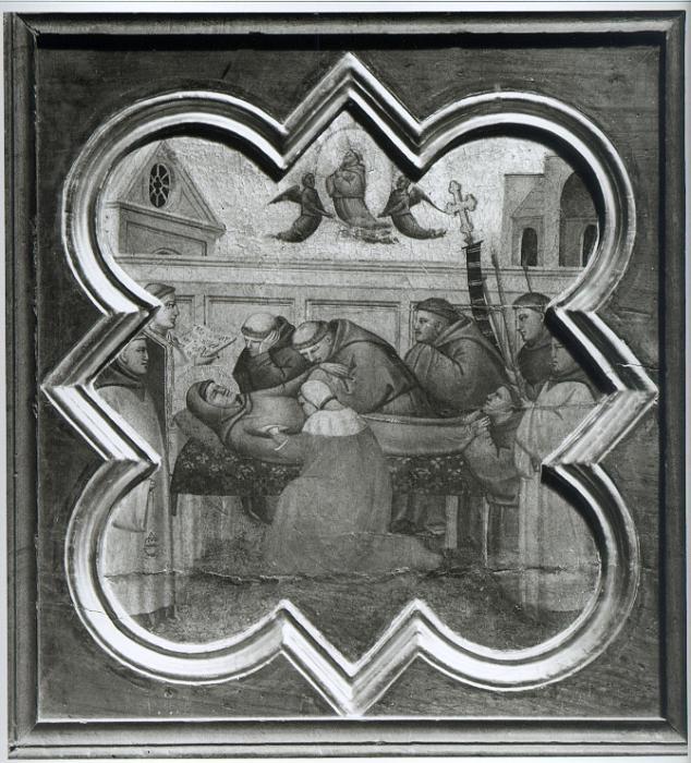 Gaddi Taddeo, Morte di san Francesco d'Assisi - Verifica delle stimmate di san Francesco d'Assisi - San Girolamo tocca le stimmate e si converte [tempera su tavola], 41,5 x 37 - Galleria dell'Accademia - Firenze - Toscana - Italia