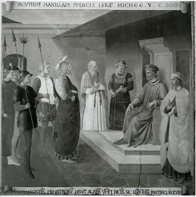 Beato Angelico, maniera di, Armadio degli argenti - Cristo davanti a Caifa [tempera su tavola], (1451 - 1453), 38,5 x 37 cm38,5 x 37 cm38,5 x 37 - Museo di San Marco - Firenze - Toscana - Italia