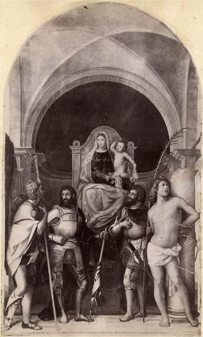 Udine, Basilica delle Grazie: Pala d'altare raffigurante Madonna con Bambino e Santi di Luca Monteverde (1522).-
