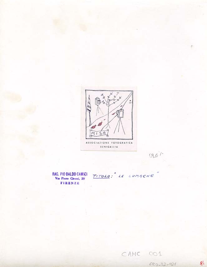 verso, al centro: TITOLO: "LE LUMACHE"