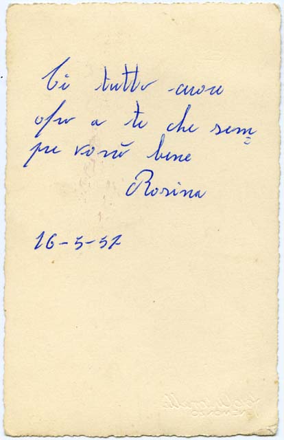 sul supporto primario, verso: Di tutto cuore/ ofro a te che sem/ pre vorrò bene/ Rosina/ 16-5-57