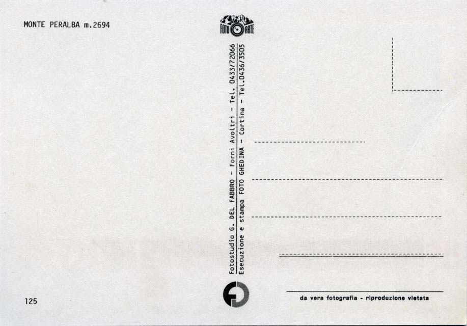 verso, in alto, a sinistra: MONTE PERALBA m. 2694