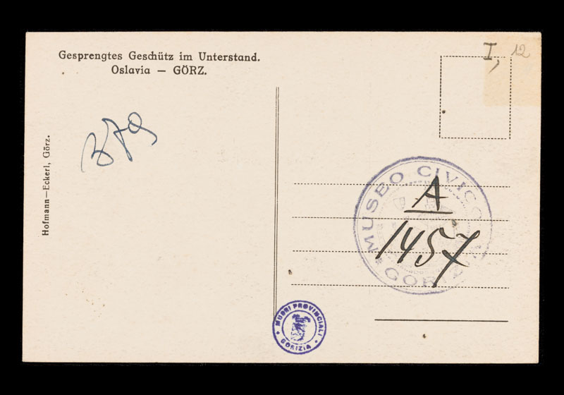verso, al centro a destra. Iscrizione posta al centro del timbro Museo Civico di Gorizia: A/ _/ 1457