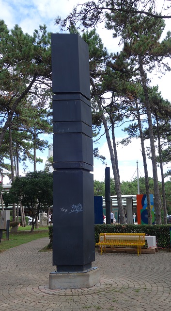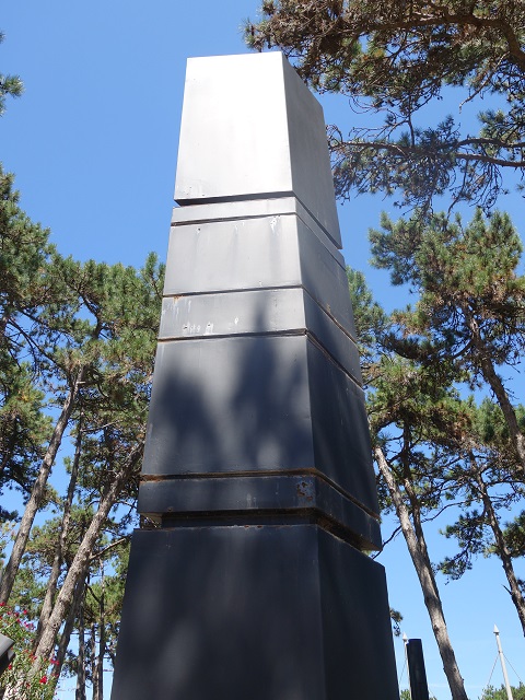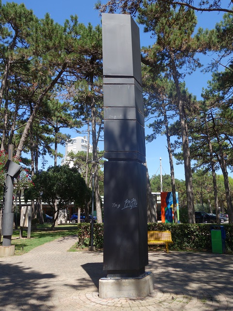 L’opera si presenta come un’imponente colonna di metallo a sezione quadrangolare, composta da moduli sovrapposti che creano una sequenza ritmica ascensionale. La composizione è costituita da una sequenza di volumi parallelepipedi a sezione quadrangolare, sovrapposti e saldati in successione, che conferiscono alla forma un andamento ascensionale. Le superfici, lisce e compatte, sono scandite da leggere interruzioni orizzontali corrispondenti alle giunzioni dei blocchi metallici, creando un ritmo regolare che accentua la scansione modulare della struttura. La parte terminale è chiusa da un grande parallelepipedo pieno, che rafforza l’impressione di stabilità e monumentalità.