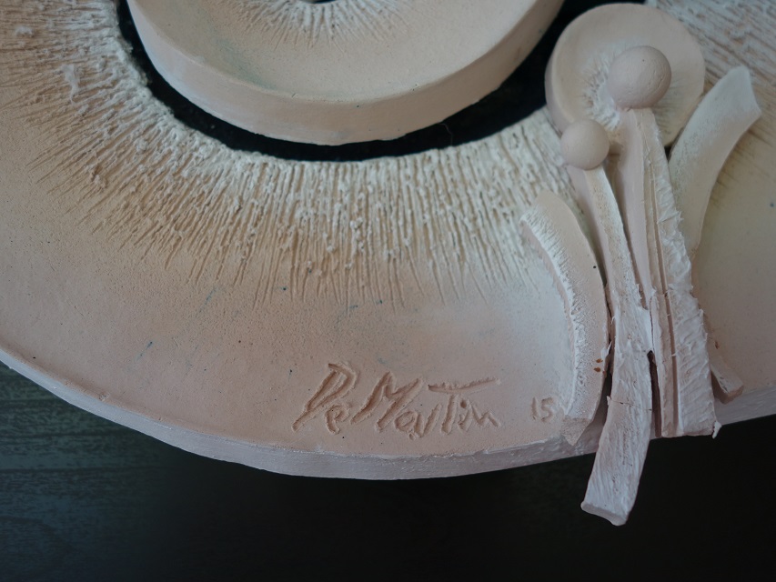 L’opera rielabora la Terrazza a Mare, simbolo architettonico di Lignano Sabbiadoro, trasformandola in segno astratto e materico. Le forme geometriche modulano il paesaggio costruito, mentre la spirale simbolica richiama il mare ma al contempo anche la pianta urbanistica di Lignano Pineta progettata da Marcello d’Olivo. Si tratta di un tentativo di riconciliazione poetica tra costruzione umana e paesaggio naturale, restituendo alla struttura la sua identità simbolica in una visione contemporanea. L’artista procede con una sintesi evocativa anziché descrittiva attraverso forme semplici e materiali tattili. De Martin è una figura di rilievo nel panorama artistico friulano contemporaneo: orafo di formazione, docente, scultore, promotore culturale. L’opera del 2015, dedicata alla Terrazza a Mare, è perfettamente in sintonia con la sua poetica: un equilibrio raffinato tra composizione architettonica, matericità, simbolismo e identità locale trasformata in estetica universale. Attivo fin dal 1979, De Martin ha esplorato l’arte orafa con forte sperimentazione: integrando paste vitree, resine plastiche e cristalli nei suoi gioielli, trasformandoli in vere “piccole sculture” da indossare. Verso il 2002 ha invertito il processo: il gioiello si è fuso nella scultura, dando vita a grandi pannelli tridimensionali in terracotta e a opere “pittoscultoree” che uniscono plasticità, colore e composizione lirica. È stato docente di arte orafa presso il Liceo Artistico “Giovanni Sello” di Udine, specializzato nel design del gioiello. Nel 2007 promosse nel suo laboratorio-artigianale a Lignano Sabbiadoro incontri culturali tra diverse arti (scultura, musica, oreficeria), trasformando la sua bottega in un centro di fermento creativo e collaborazione e nel 2016 fu protagonista di una mostra personale presso la Galleria Auri Fontana di Lignano Sabbiadoro. Nel luglio del 2012 fu inaugurata una sua mostra di scultura e arte orafa alla Terrazza a Mare, evento clou del progetto " Una terrazza d'arte", progetto patrocinato da Comune di Lignano Sabbiadoro. Piero De Martin si è spento nel novembre 2022, all’età di 67 anni, a seguito di una malattia. Era conosciuto a livello internazionale per l’estro delle sue creazioni e per il contributo culturale nella regione Friuli. Le sue opere sono conservate in collezioni private e pubbliche, anche all’estero (Monaco, New York, Dubai, Miami, Stoccolma, Efeso, ecc.).