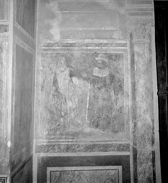 L'affresco raffigura una donna e un uomo stanti, intenti a comunicare tra loro. La scena è stata interpretata come congedo di Erfo, uno dei fondatori dell'abbazia che sta per recarsi a Sesto al Regnena, dalla madre Piltrude, che resta a Salt.