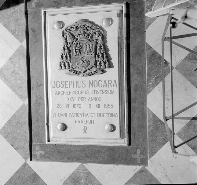 in basso: JOSEPHUS NOGARA / ARCHIEPISCOPUS UTINENSIUM / XXVII PER ANNOS / 26 - VI - 1872 – 9 - XII – 1995 / IN OMNI PATIENTIA ET DOCTRINA / PRAEFUIT / PX [in monogramma]