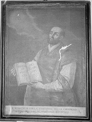 in basso: S. IGNAZIO DI LOIOLA, FONDATORE DELLA COMPAGNIA/ DI GESÙ AUTORE DE SPIRITUALI ESERCIZIJ.