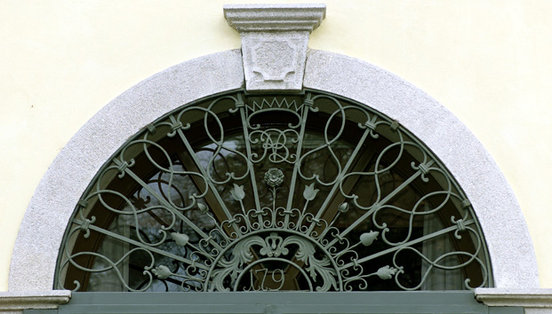Sul portone è presente l'iscrizione con una data (leggibile "179?") e un monogramma con le sigle "NB".