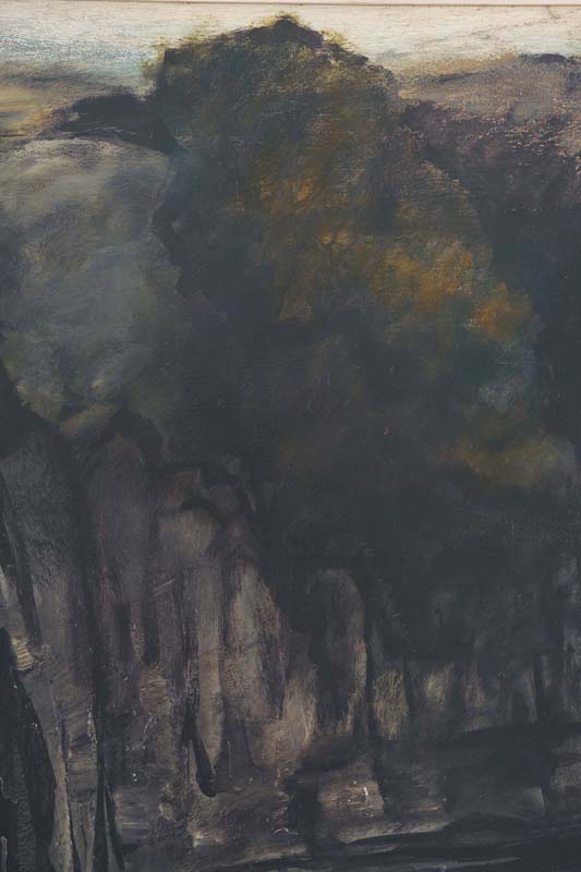 L’opera priva di data è di difficile datazione. Potrebbe, ad una prima analisi stilistica, appartenere al periodo poco antecedente al vivacizzarsi della tavolozza, nei primi anni Settanta. Il dipinto, che ha come soggetto una pietraia carsica, è infatti molto cupo. Prevalgono i grigi e il nero con qualche raro tocco di pennello bianco ad accentuare il contrasto chiaroscurale. L’ipotesi di datazione potrebbe essere sostenuta anche dalla partecipazione nel 1974 alla mostra personale nella Galleria milanese di Gian Ferrari. Nessun altro indizio stilistico ci aiuta. La stesura del colore non ha caratteristiche accentuate: è infatti steso a spatola in alcune porzioni e aggrumato in superficie in altre parti della superficie. Nella cupezza dell’immagine non si scorge alcun riferimento naturalistico, ma le rocce dipinte sembrano tendere all’astrazione anche se sappiamo che la volontà di De Cillia si allontana da ogni tipo di irrealtà per abbracciare la poetica del realismo. (De Micheli, 1986)