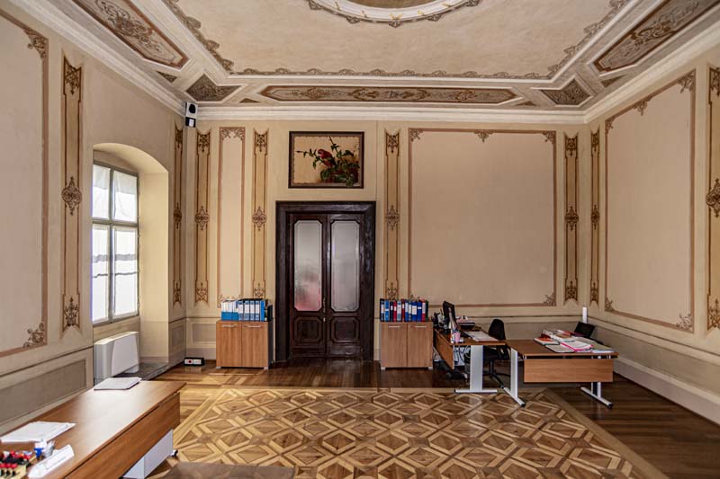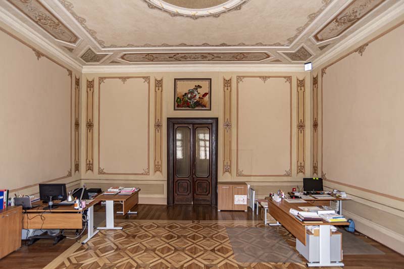 Un’ultima fase che interesso la decorazione degli interni del palazzo afferisce al primo Novecento, quando l’edificio divenne sede dell’Istituto di Toppo Wassermann (Visentin 2017, p. 153). Alcune sale registrano infatti una decorazione in pieno stile liberty degli anni Venti del Novecento, ripresa anche nell’edificio attiguo, acquistato all’epoca dal Comune al fine di fare ulteriori spazi all’Istituto (Visentin 2017, p. 153, n. 81).