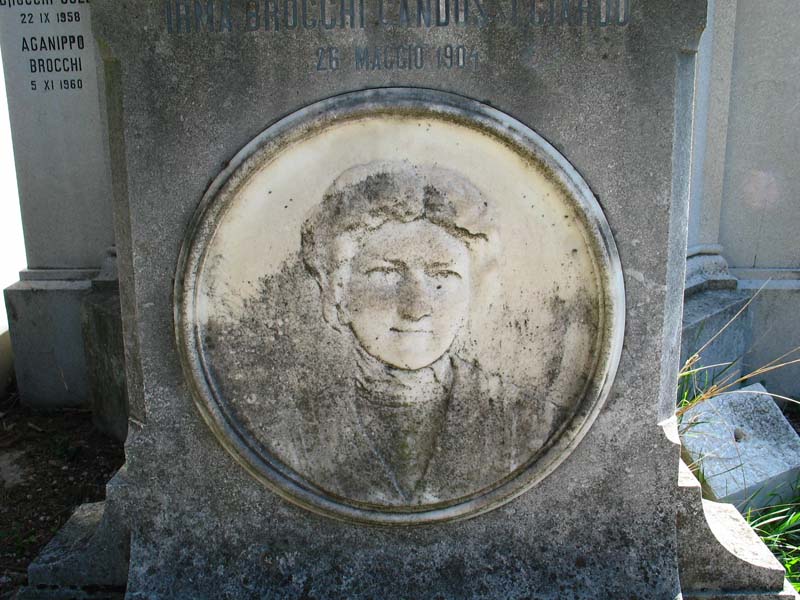 davanti: GIUSEPPINA BERNARDI BROCCHI/ QUI RIPOSA NEL SIGNORE/ IL MARITO AGANIPPO BROCCHI/ IL FIGLIO ARISTIDE/ PREGANO ALLA PIA LUCE PERPETUA/ VISSE SOLI 29 ANNI/ FU PROVATA DA LUNGA MALATTIA/ DEPOSTA IL DÌ IV FEBBR. MDCCCLV