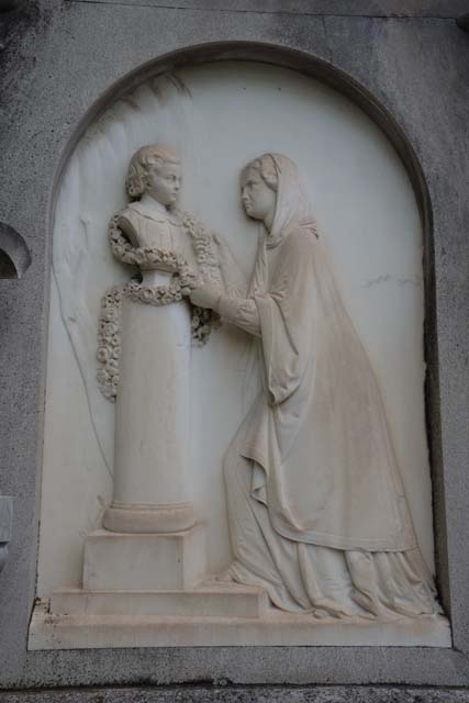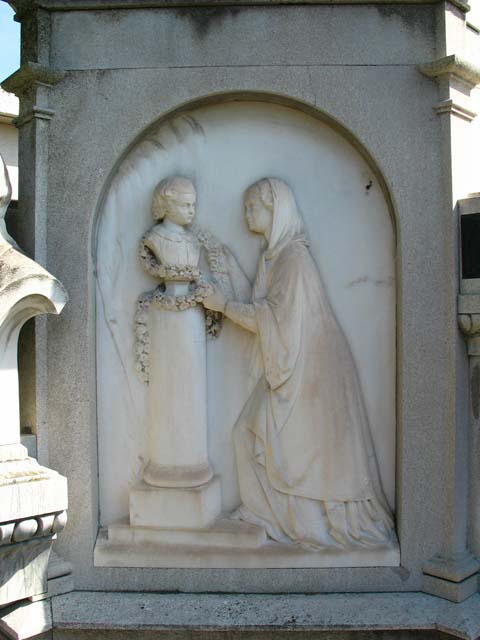 in basso a destra: DORMI VITTORIO/ INFANTE SESSENNE/ DELIZIA NOSTRA/ AGANIPPO E GIOV. MARIA/ BROCCHI NATA FECONDO/ QUI TI ADAGIARONO/ IL DÌ XXVII NOV. MDCCCLXIII/ CON PRECI E LAGRIME