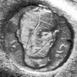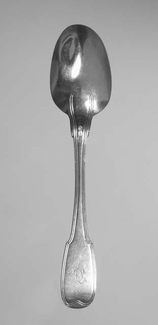 Cucchiaio con manico a violino e doppia filettatura. Sul retro, nella parte superiore del manico sono incise le iniziali CF.
