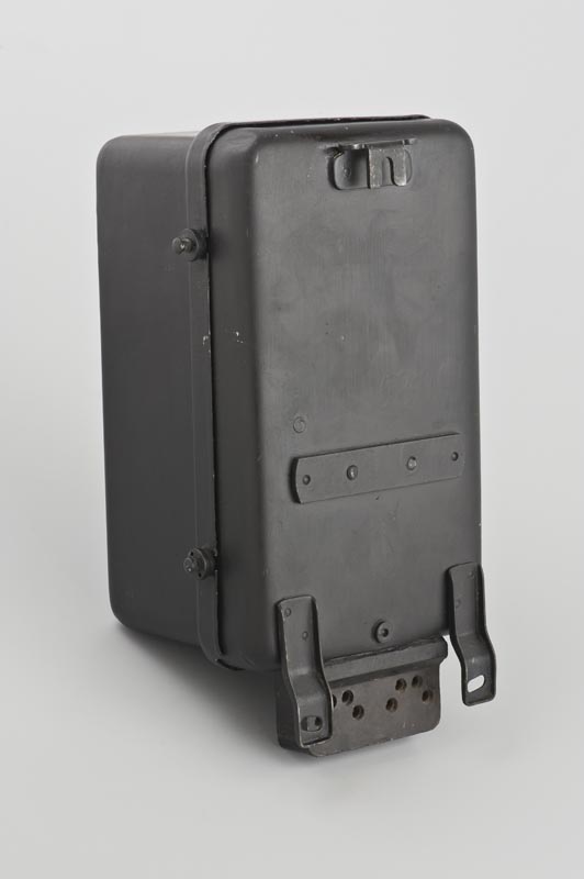 Oggetto a forma di parallelepipedo, composto da una base d'appoggio metallica di colore nero, nella quale è alloggiato il meccanismo di funzionamento del contatore (magnete, disco in alluminio e contagiri) e una copertura realizzata sempre in metallo di color nero; su questa sono stati ricavati due piccoli quadranti in vetro: quello di forma rettangolare mostra il contagiri, quello di forma ovale permette di osservare il disco in alluminio. Il contatore è provvisto, sul lato inferiore, di una sorta di scatoletta dal profilo rettangolare, nella quale si trovano i punti di contatto per il circuito elettrico (rappresentati da quattro fori di entrata e rispettive piastrine di stagno). Lo strumento è chiuso con due viti in acciaio, poste su entrambi i lati lunghi e leggermente sporgenti dal profilo; è dotato di tre ganci in ferro per il fissaggio a parete.