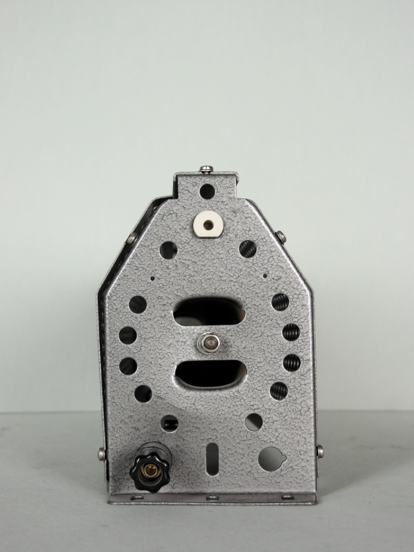 Oggetto metallico a forma di parallelepipedo, superiormente provvisto di un binario su cui scorre una componente di ceramica, che fa da regolatore allo strumento. Numerosi fori di aereazione sono disposti ordinatamente sulla faccia posteriore e anteriore, mentre, su ciascuna faccia laterale, sono operati altri dodici fori di aereazione, disposti a cerchio intorno a un punto di giunzione centrale, tra l'armatura esterna e un cilindro di ceramica interno. Nella parte bassa di una faccia laterale sono posizionati due spinotti per il collegamento dei cavi elettrici, mentre l'altro lato presenta un solo spinotto. Gli spinotti sono costituiti da una vite fissa e da una rotellina, avvitabile a seconda delle necessità, realizzata in acciaio con rivestimento di plastica. La base dello strumento è assente, permettendo di vedere il cilindro di ceramica cu cui è avvolto il filo metallico collegato ai morsetti.