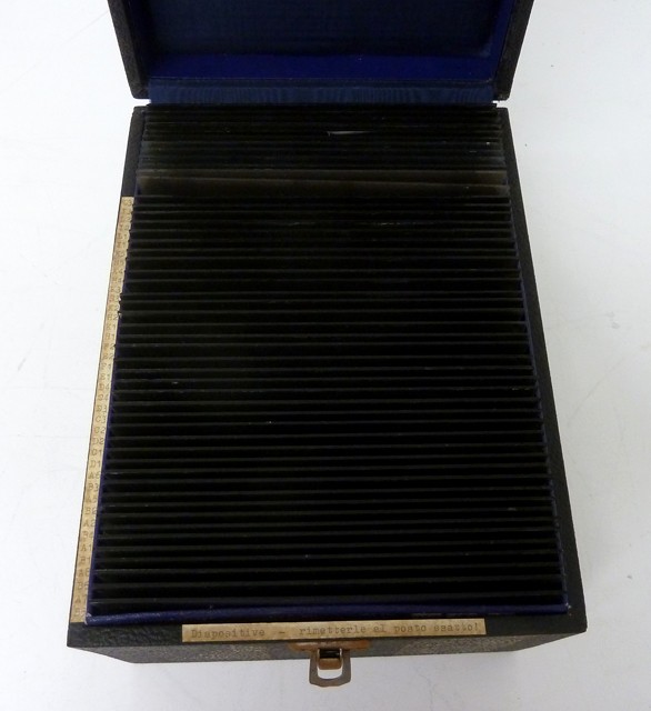 Lastra di vetro numerata, di forma rettangolare, su cui è stata stampata parte di un rilievo fotogrammetrico effettuato, negli anni '50, dentro la Grotta Gigante di Trieste.