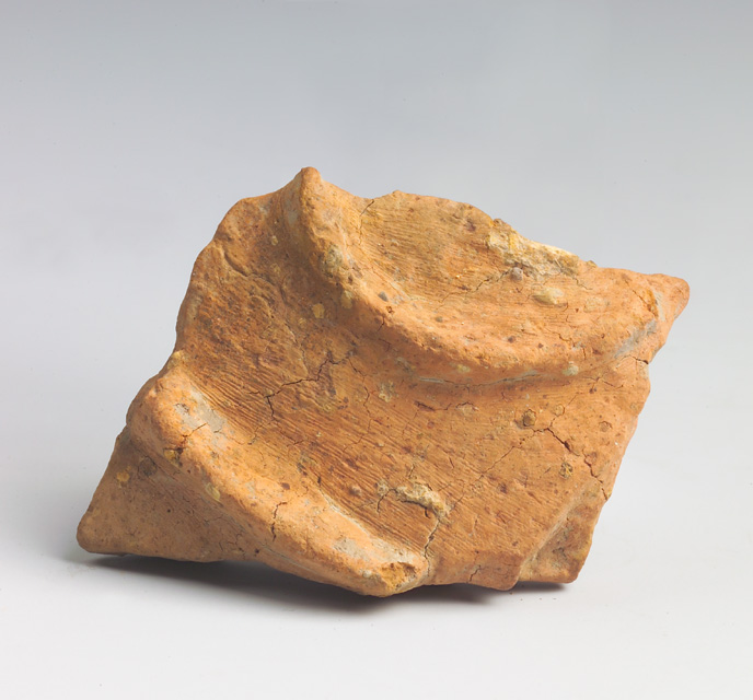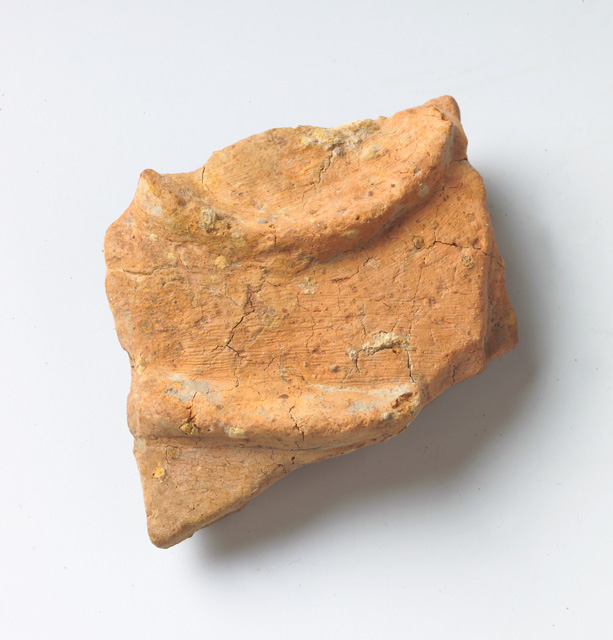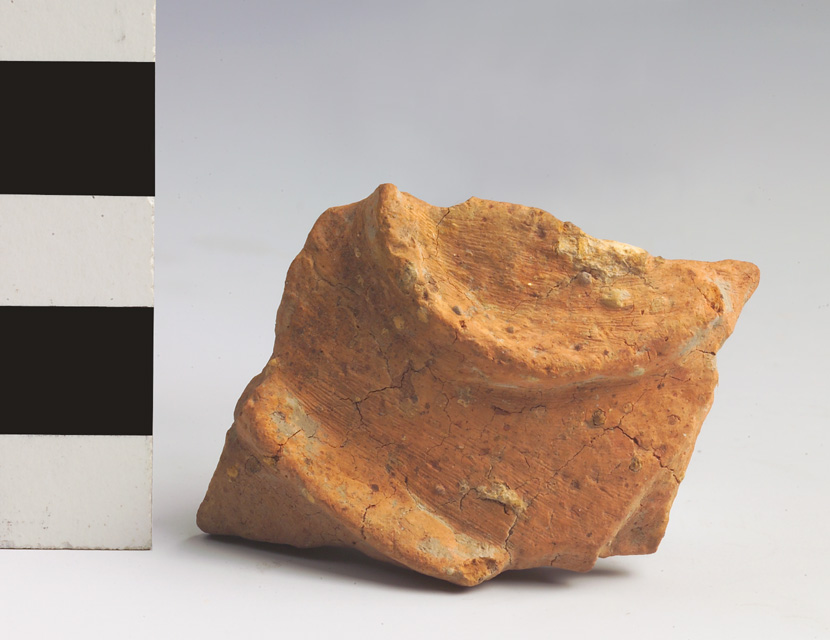 Frammento di parete convessa decorata da un cordone suborizzontale, leggermente arcuato, e da uno semicircolare