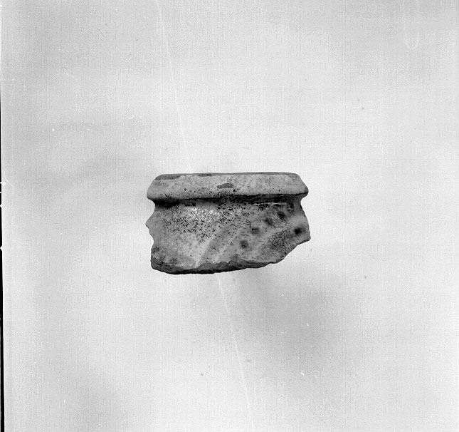 Il reperto fa parte di un gruppo di sei frammenti di boccali recuperati nel 1980 nel cortile di casa Corona, sito nell'omonima calle, durante i lavori di restauro dell'edificio (RA 5640,5651,28924,5650,5649,28925). I frammenti sono databili, in base alla forma e alla decorazione, al periodo tra il XVI e ll XVII secolo.