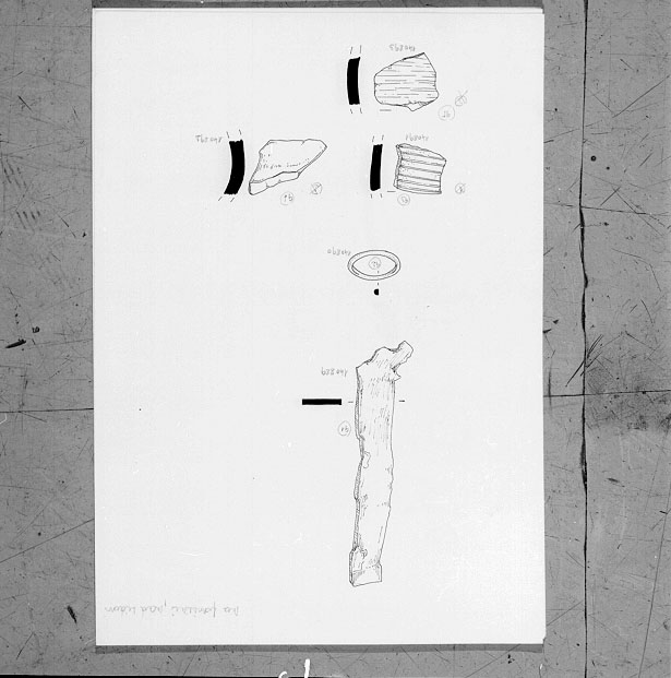 Elemento longitudinale leggermente curvo da una parte, con sezione rettangolare, forse un coltello.