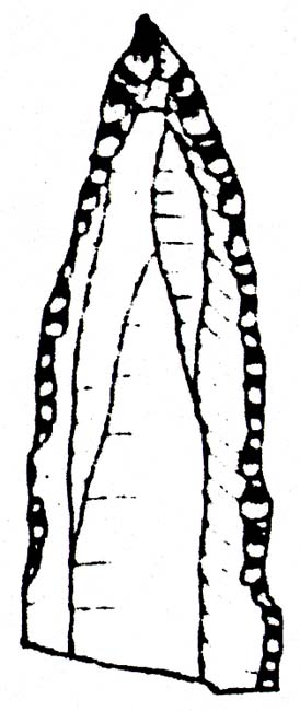 Punta a dorso bilaterale totale su lama di selce grigio chiara a sezione trapezoidale conservante tracce di cortice.
