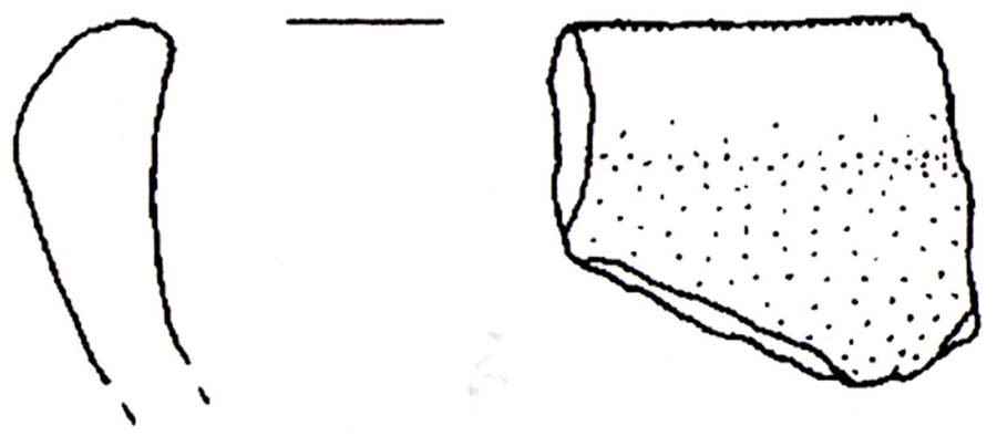 Frammento di scodella con bordo assottigliato e arrotondato, brevissimo orlo rientrante, spalla ispessita ed appena angolata, accenno di vasca a profilo arcuato profondo. Impasto fine, superfici lisciate accuratamente bruno scuro