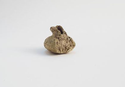 Fuseruola piriforme, con foro passante verticale e scanalatura circolare sulla parte inferiore.