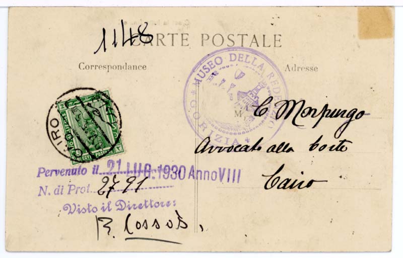 verso, a destra: C Morpurgo / Avvocato alla Corte / Cairo